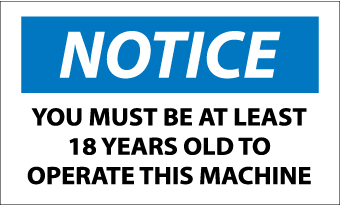 Notice, You Must Be At Least 18 Years Old To Operate This Machine, 3X5, Pressure Sensitive Vinyl .0045