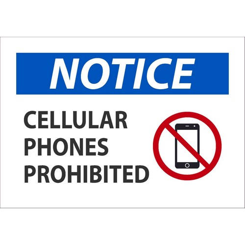 NMC, N509P, Notice, Cellular Phones Prohibited", Adhesive Backed Vinyl, 7" x 10"