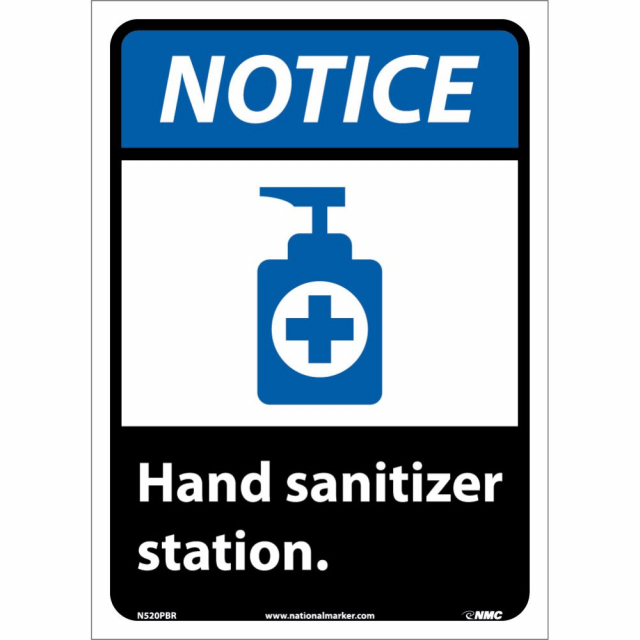 NMC, N520PBR, Notice Hand Sanitizer Station, 14x10", Ps Removable Vinyl