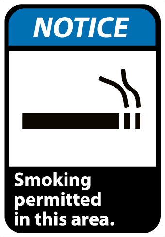 NMC, NGA3R, 10"x 7"ANSI Sign w/Legend: "Notice - Smoking Permitted In This Area (w/Graphic)"