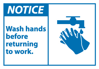 NMC, NGA7AP, 3"x 5"ANSI Sign w/Legend: "Notice - Wash Hands Before Returning To Work (Graphic)"