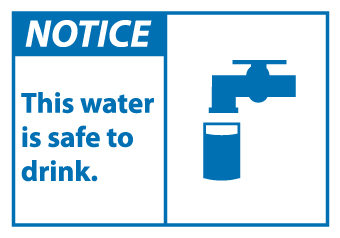 NMC, NGA8AP, 3"x 5"ANSI Sign w/Legend: "Notice - This Water Is Safe To Drink (Graphic)"