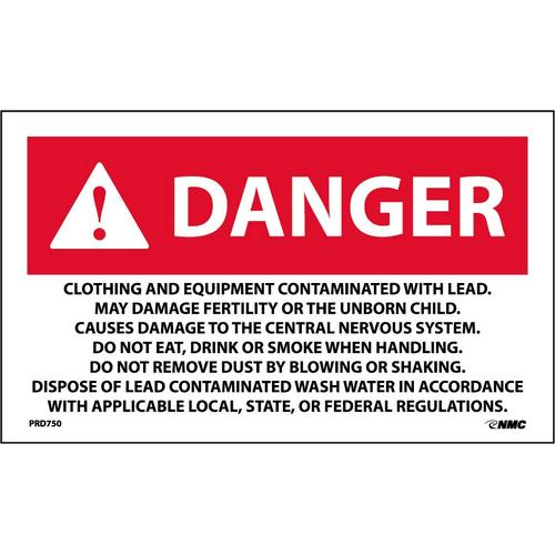 NMC, PRD750, 3" x 5" "Danger Clothing and Equipment Contaminated with Lead" Label