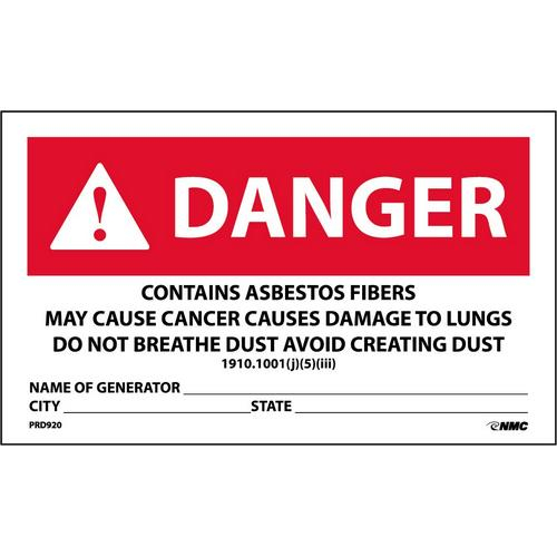 NMC, PRD920, 3" x 5" "Danger Causes Damage To Lungs Do Not Breathe" Ps Paper Label