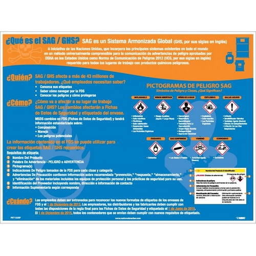 Laminated Poster, GHS Intro, Label & Pictograms 18" x 24". Language - Spanish