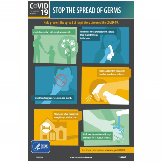 NMC, PST139C, Stop The Spread Of Germs, English, 18x12 Vinyl Poster