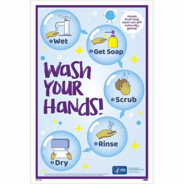 NMC PST152C Poster, 18x12", "Wash Your Hands Step By Step"