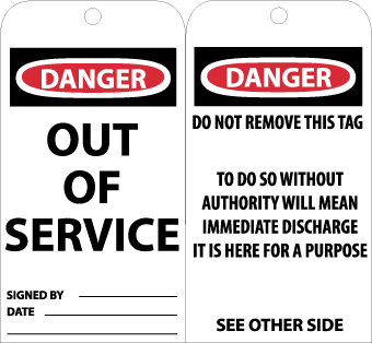 NMC, RPT146G, Accident Prevention Tag w/Legend: "Out Of Service"
