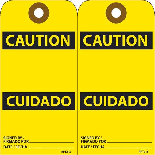 Tags, Caution, Blank, Bilingual, 25pk, 6x3, .015 Unrippable Vinyl With Grommet, Zip Ties Included