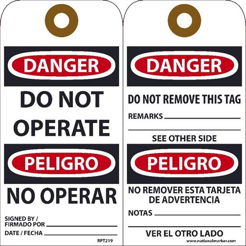 NMC, RPT219G, "Danger Do Not Operate" Bilingual Tag, Grommet