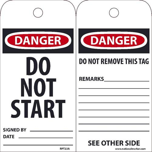 NMC, RPT22A, "Danger Do Not Start Signed" Tag, 1 Top Center Hole