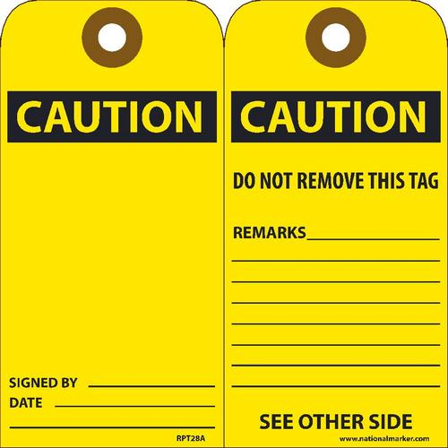 Tags, Caution, Do Not Remove, 25pk, 6x3, .015 Unrippable Vinyl With Grommet, Zip Ties Included