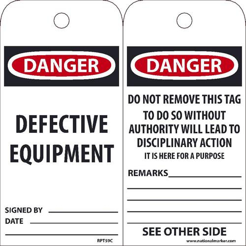 NMC, RPT59C, "Danger Defective Equipment" Tag, 1 Top Center Hole