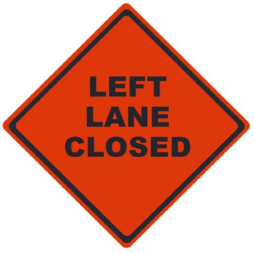 NMC, RUM4809, Traffic Sign "Left Lane Closed", 48" x 48", Mesh Material