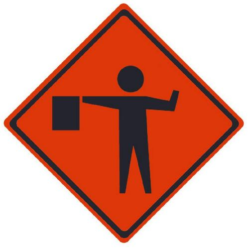 Inform drivers that a flagger is stationed ahead using an eye-catching sign. The combination of the bright orange color and the simple flagger graphic will bring attention to your message.