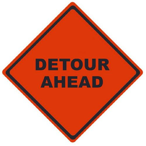 Make sure that no driver is unaware of an alteration in their route. Notify drivers of an impending detour using this reflective roll-up detour ahead sign.