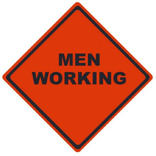 NMC, RUNR3612, Traffic Sign "Men Working", 36" x 36", Non-Reflective Vinyl Material