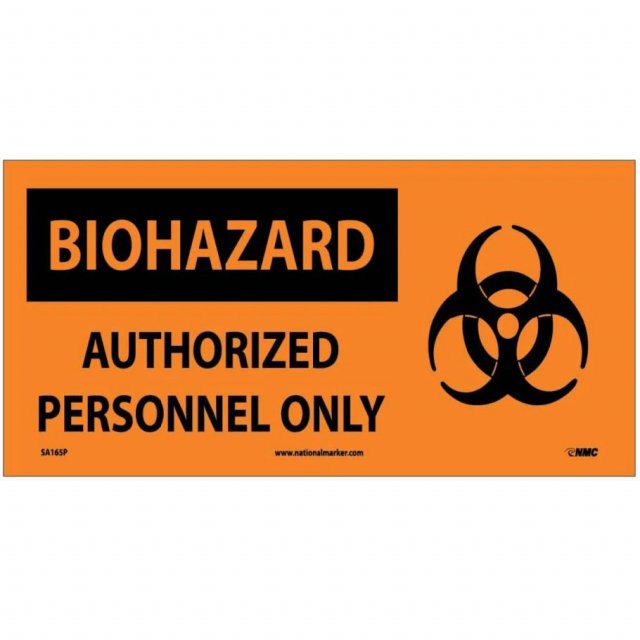 NMC, SA165P, 7" x 17" Graphic OSHA Safety Sign w/Legend: "Biohazard, Authorized Personnel Only", PS Vinyl