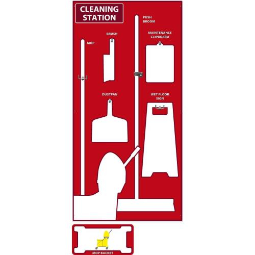NMC, SB143AL, Cleaning Station Shadow Board, Red/White, Industrial Grade Aluminum