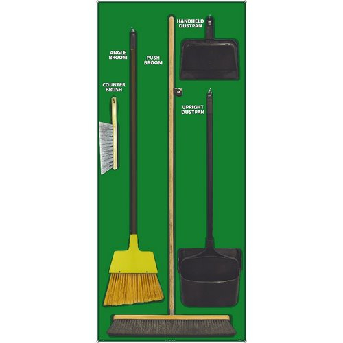 NMC, SBK103AL, Janitorial Shadow Board, Combo Kit, Green/Black, Industrial Grade Aluminum, 30" x 68"