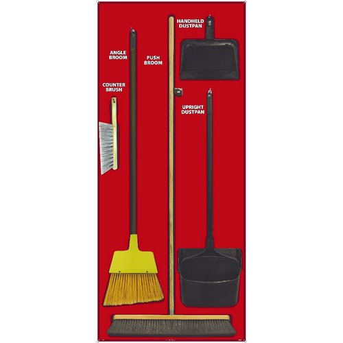 NMC, SBK105AL, Janitorial Shadow Board, Combo Kit, Red/Black, Industrial Grade Aluminum, 30" x 68"