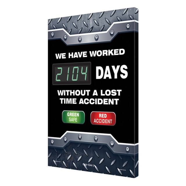 NMC, SCK104, 28" x 20" Digi-Day Electronic Safety Scoreboard, "We Have Worked _ Days Without A Lost Time Accident" Legend