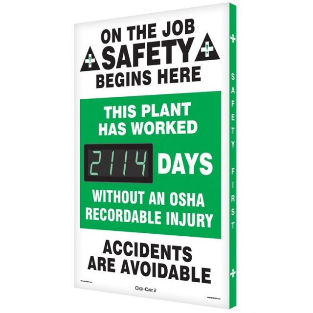 NMC, SCK114, 28" x 20" Digi-Day Electronic Safety Scoreboard, "This Plant Has Worked _Days Without An OSHA Recordable Injury" Legend