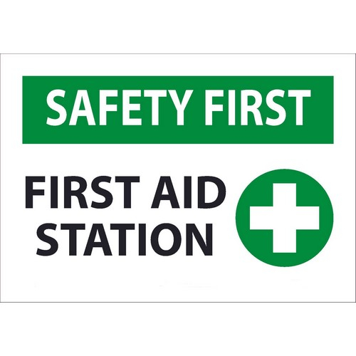 NMC, SF161R, Sign "Safety First, First Aid Station", Rigid Plastic, 7" x 10"