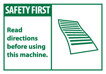 Safety First, Read Directions Before Using This Machine, 3X5, Pressure Sensitive Vinyl .0045