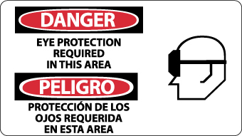 NMC, SPSA102R, 10" x 18" Graphic OSHA Safety Sign w/Legend: "Danger, Eye Protection Required (Bilingual)", Rigid Plastic