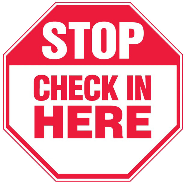 Stop Check In Here, Octagon, 12X12, Rigid Plastic