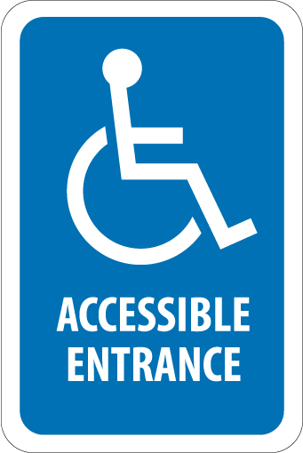 NMC, TM149J, 18" x 12" Handicap Parking Sign w/Legend: "Accessible Entrance (Graphic)", Egp Ref Alum