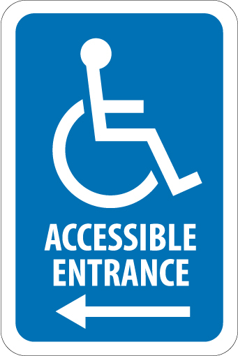 NMC, TM150J, 18" x 12" Handicap Parking Sign w/Legend: "Accessible Entrance (Left Arrow), Graphic", Egp Ref Alum