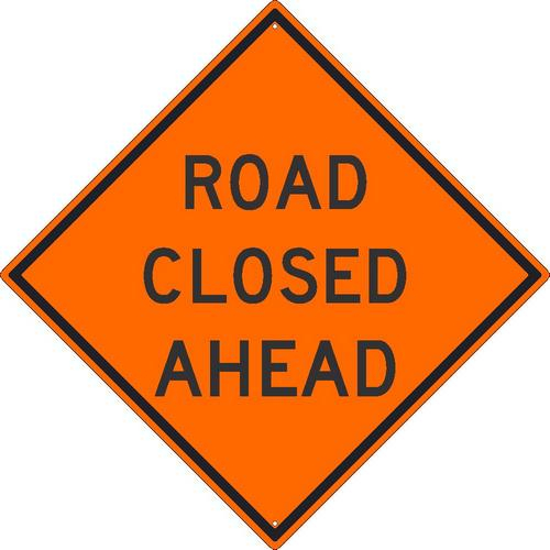 NMC, TM175K, 30" x 30" .080 Heavy Duty High Intensity Reflective Aluminum "Road Closed Ahead" Sign