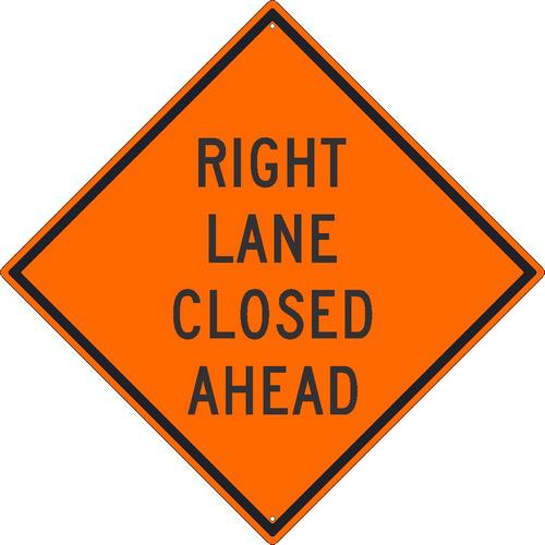 NMC, TM180K, 30" x 30" .080 Heavy Duty High Intensity Reflective Aluminum "Right Lane Closed Ahead" Sign