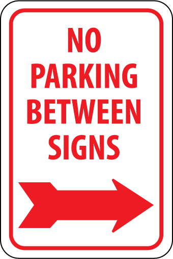 No Parking Between Signs (W/ Right Arrow), 18X12, .040 Alum