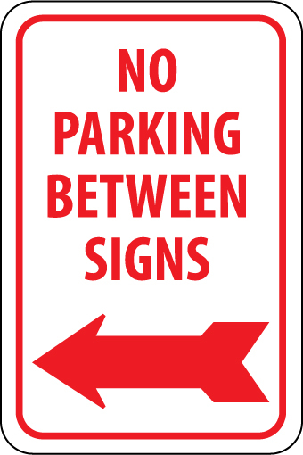 No Parking Between Signs (W/ Left Arrow), 18X12, .040 Alum