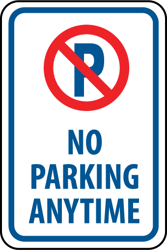 P With Slash No Parking Anytime, 18X12, .063 Alum