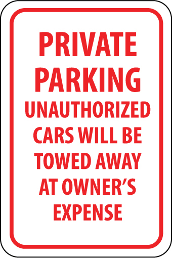 Private Parking Unauthorized Cars Will Be Towed..., 18X12, .063 Alum