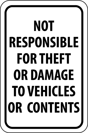 Not Responsible For Theft Or Damage To Vehicles Or Contents, 18X12, .040 Alum