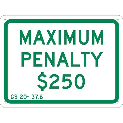 9”x12” Standard Aluminum “Maximum Penalty $250” Sign