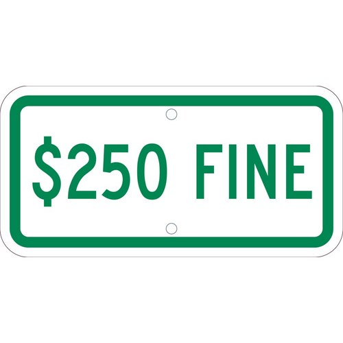 6”x12” Heavy Duty Reflective Aluminum “$250 Fine” Sign
