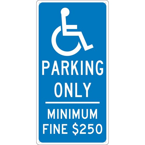 Standard Aluminum Handicapped Graphic ”Parking Only Minimum Fine $250” Sign California