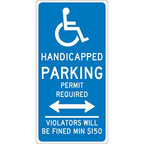 Standard Aluminum “Handicapped Parking Permit Required Violators Will Be Fined Min $150” Double Arrow Sign Connecticut