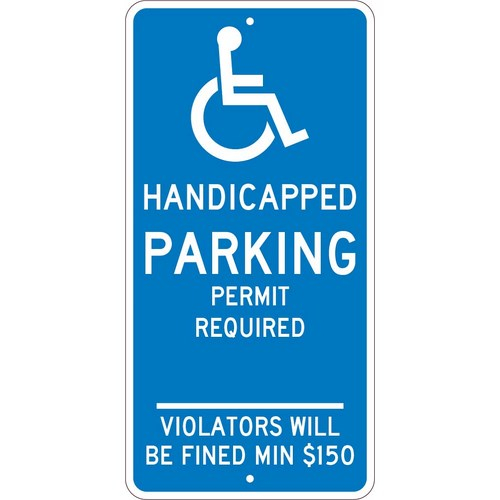Heavy Duty Reflective Aluminum “Handicapped Parking Permit Required Violators Will Be Fined Min $150” Sign Connecticut