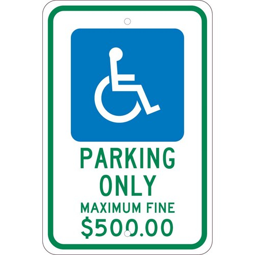 NMC, TMS331J, 18"x12" Heavy Duty Reflective Aluminum "Parking Only Maximum Fine $500" Sign
