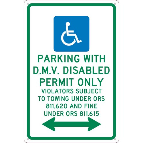 Standard Aluminum “Parking with D.M.V. Disabled Permit Only” Sign Oregon