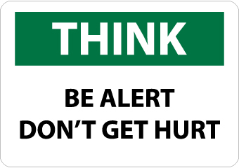 Think, Be Alert Don'T Get Hurt, 10X14, Pressure Sensitive Vinyl .0045