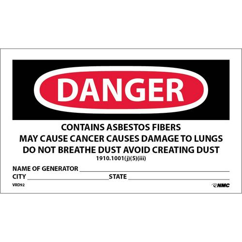 NMC VRD92 Asbestos Label "Danger Contains ..."
