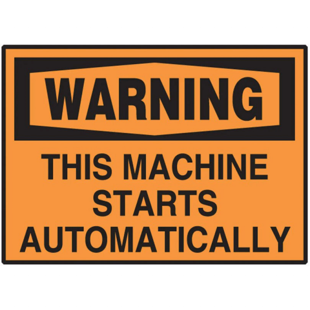 Warning, This Machine Starts Automatically, 3X5, Pressure Sensitive Vinyl .0045